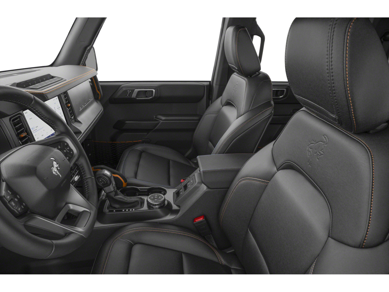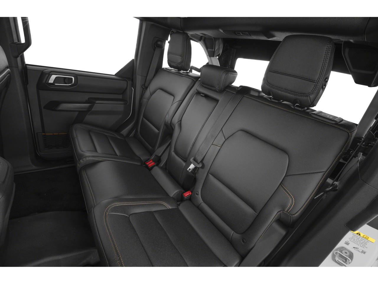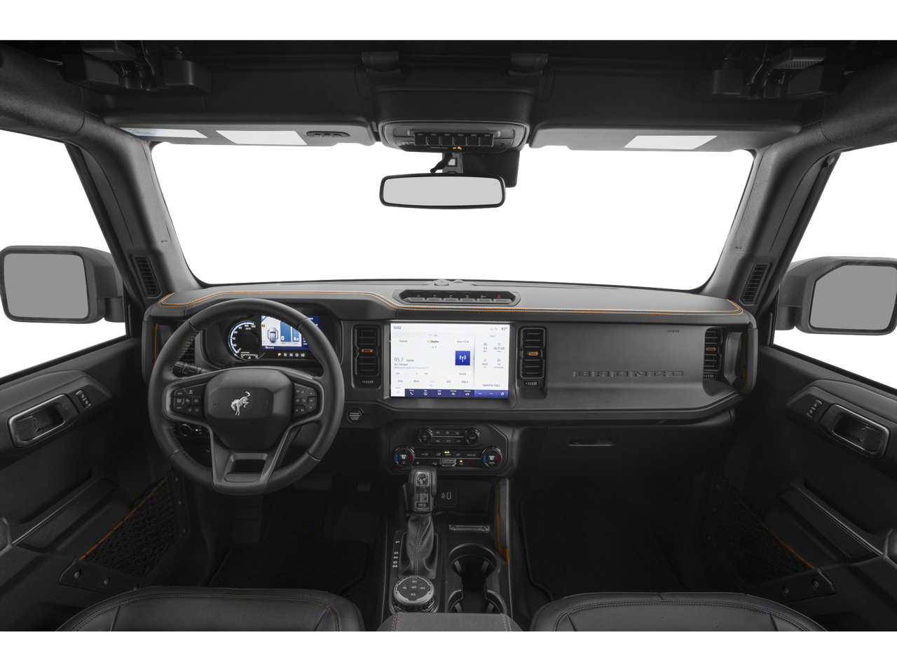 Black Appearance Package (Black Molded-In-Color Door Handles, Black Molded-In-Color Fender Flares, Black Molded-In-Color Sideview Mirror Caps, and Black-Painted Molded-In-Color Grille), Equipment Group 334A Lux Package (2-Door Intelligent Access w/Lock/Unlock, 360-Degree Camera, Adaptive Cruise Control, Ambient Footwell Lighting, Connected Navigation, Dr & Pass Illuminated Sliding Visor Vanity Mirrors, Dual Smart Charging USB Ports, Dual-Zone Electronic Automatic Temperature Control, Evasive Steering Assist, Front Parking Sensors, Front Row Heated Seats, Information on Demand Panel, Power Outlet - Back Side of Center Floor Console, Radio: B&O Sound System by Bang & Olufsen, Rear Parking Sensors, Sideview Mirrors, and Universal Garage Door Opener), 4-Wheel Disc Brakes, 4.7 Axle Ratio, 7 Speakers, ABS brakes, Air Conditioning, Alloy wheels, AM/FM radio: SiriusXM with 360L, AM/FM Stereo, Auto High-Beam Headlamps, Auto High-beam Headlights, Auto-dimming Rear-View mirror, BLIS Blind Spot Information System, Brake assist, Compass, Delay-off headlights, Door Storage Bags, Driver door bin, Driver vanity mirror, Dual front impact airbags, Dual front side impact airbags, Electronic Stability Control, Emergency communication system: 911 Assist, Exterior Parking Camera Rear, Front anti-roll bar, Front Bucket Seats, Front Center Armrest, Front fog lights, Front reading lights, Front wheel independent suspension, Fully automatic headlights, Hard Top Sound Deadening Headliner, Heated door mirrors, Heated front seats, Heated steering wheel, Illuminated entry, Integrated roll-over protection, Internet access capable: FordPass Connect, Lane-Keeping System, Leather Shift Knob, Low tire pressure warning, Marine Grade Vinyl Heated Bucket Seats, Occupant sensing airbag, Outside temperature display, Overhead airbag, Overhead console, Painted Dual Tops, Panic alarm, Passenger door bin, Passenger vanity mirror, Power door mirrors, Power steering, Power windows, Pre-Collision Assist w/Automatic Emergency Braking, Radio data system, Raptor-Style Running Board, Rear-View Camera, Rear-Window Defroster & Washer, Remote keyless entry, Security system, SiriusXM w/360L, Speed control, Split folding rear seat, Steering wheel mounted audio controls, SYNC 4, Tachometer, Telescoping steering wheel, Tilt steering wheel, Traction control, Trip computer, Variably intermittent wipers, Voltmeter, and Wheels: 17 Carbonized Gray-Painted Aluminum.