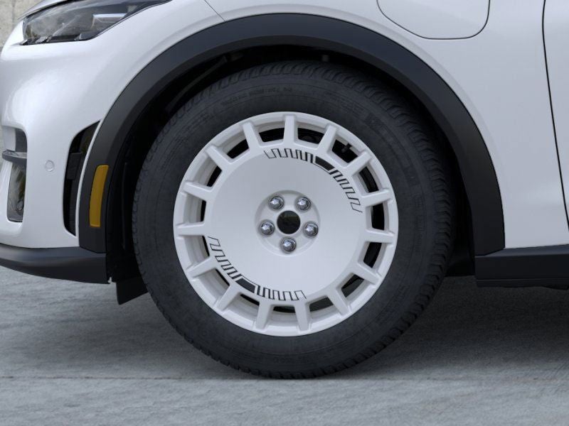 Equipment Group 400A Standard Package, Mustang Mach-E Rally (Black Painted Steel Roof, Door, Wheel, Roof & Bumper Trim, Ford Performance Front Seats, Hood & Decklid Stripes, Mach-E Rally Door Graphics, Mustang Mach-E GT Performance Upgrade, Oxford White Steering Wheel/Door/IP Interior Trim, Rallycross-Tuned MagneRide Damping System, RallySport Drive Mode, Sport Pedals, Unique Front Splitter in Dark Carbonized Gray, Unique Grille Shield in Dark Carbonized Gray, Unique Raised Rear Spoiler in Dark Carbonized Gray, and Wheels: 19 High Gloss Oxford White), 10 Speakers, 4-Wheel Disc Brakes, ABS brakes, Adaptive suspension, Air Conditioning, AM/FM radio: SiriusXM with 360L, Apple CarPlay/Android Auto, Auto High-beam Headlights, Auto-dimming Rear-View mirror, Automatic temperature control, Brake assist, Bumpers: body-color, Compass, Delay-off headlights, Driver door bin, Driver vanity mirror, Dual front impact airbags, Dual front side impact airbags, Electronic Stability Control, Emergency communication system: 911 Assist, Exterior Parking Camera Rear, Four wheel independent suspension, Front anti-roll bar, Front Bucket Seats, Front Center Armrest, Front dual zone A/C, Front reading lights, Fully automatic headlights, Garage door transmitter, Heated door mirrors, Heated front seats, Heated Perforated ActiveX Performance Seats, Heated steering wheel, Illuminated entry, Knee airbag, Low tire pressure warning, Memory seat, Mobile Power Cord (120V/240V), Navigation system: Connected Navigation, Occupant sensing airbag, Outside temperature display, Overhead airbag, Overhead console, Panic alarm, Passenger door bin, Passenger vanity mirror, Power door mirrors, Power driver seat, Power Liftgate, Power passenger seat, Power steering, Power windows, Radio data system, Radio: B&O Sound System by Bang & Olufsen, Rain sensing wipers, Rear anti-roll bar, Rear seat center armrest, Rear side impact airbag, Rear window defroster, Rear window wiper, Remote keyless entry, Security system, SiriusXM w/360L, Speed control, Speed-sensing steering, Speed-Sensitive Wipers, Split folding rear seat, Spoiler, Steering wheel mounted audio controls, SYNC 4A w/Enhanced Voice Recognition, Telescoping steering wheel, Tilt steering wheel, Traction control, Trip computer, Turn signal indicator mirrors, and Variably intermittent wipers.