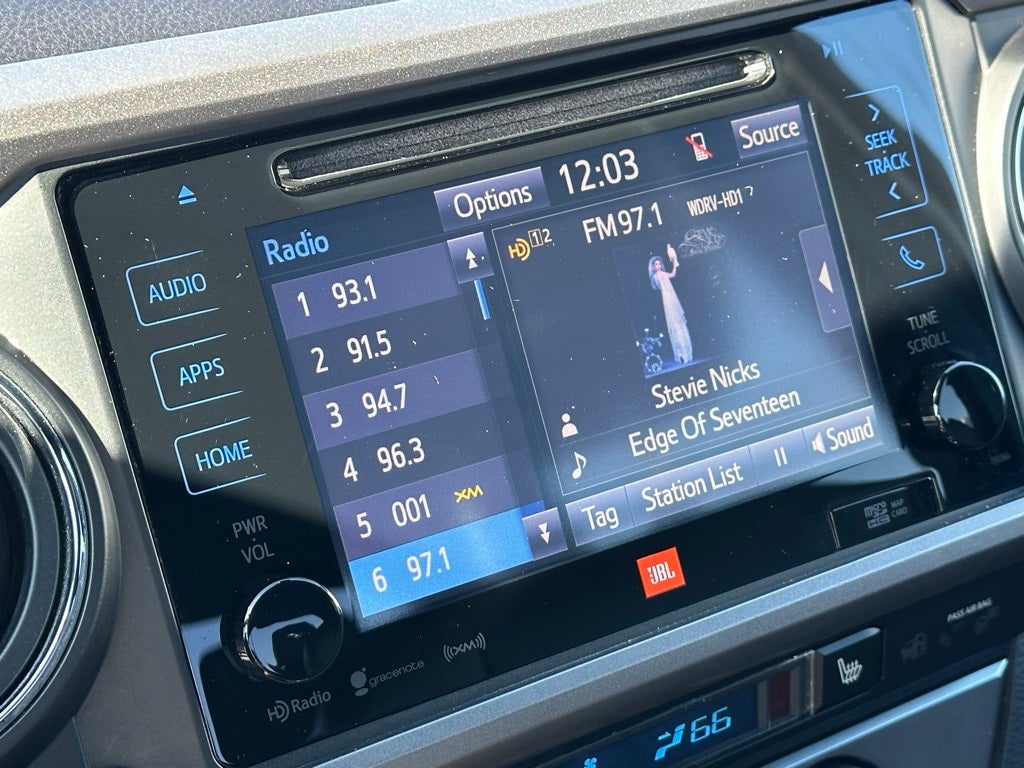 - Radio: Entune Premium JBL AM/FM/CD w/Nav & App Ste -inc: MP3/WMA playback capability, 6 JBL speakers w/subwoofer, 7" high-resolution touch-screen display w/split screen, auxiliary port, USB media port, Siri eyes free, advanced voice recognition, Bluetooth hands-free phone capability, phone book access and music streaming, cache radio, HD Radio, HD predictive traffic and doppler weather overlay, SiriusXM satellite radio w/complimentary SiriusXM Satellite All Access 3-month trial subscription included and Gracenotes album cover art