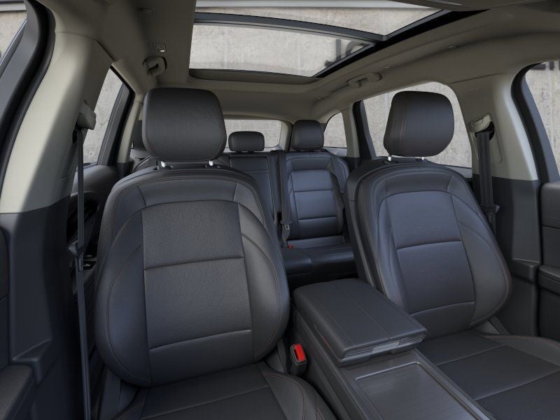 Equipment Group 102A (110V Power Converter, 19 Bright Machined Aluminum Wheels, Auto Air Refresh, BlueCruise Equipped (4-Years Included), Digital Scent, Hands-Free Power Liftgate, Lincoln Soft Touch Heated Front Captain's Chairs, Radio: AM/FM Revel Audio System, and Ventilated Front Seats), Jet Appearance Package (Black Exterior Elements, Body-Color Exterior Elements, and Wheels: 20 Bright Machined Aluminum), Lincoln Connectivity Package, 2.0L GTDI FHEV, 10 Speakers, 4-Wheel Disc Brakes, ABS brakes, Air Conditioning, Alloy wheels, AM/FM radio: SiriusXM with 360L, Apple CarPlay/Android Auto, Auto High-beam Headlights, Auto tilt-away steering wheel, Auto-dimming Rear-View mirror, Automatic temperature control, Brake assist, Bumpers: body-color, Compass, Delay-off headlights, Driver door bin, Driver vanity mirror, Dual front impact airbags, Dual front side impact airbags, Electronic Stability Control, Emergency communication system: 911 Assist, Exterior Parking Camera Rear, Four wheel independent suspension, Front anti-roll bar, Front Bucket Seats, Front Center Armrest w/Storage, Front dual zone A/C, Front reading lights, Fully automatic headlights, Garage door transmitter, Heated door mirrors, Heated front seats, Heated steering wheel, Illuminated entry, Knee airbag, Leather steering wheel, Lincoln Digital Experience, Low tire pressure warning, Memory seat, Navigation System, Occupant sensing airbag, Outside temperature display, Overhead airbag, Overhead console, Panic alarm, Passenger door bin, Passenger vanity mirror, Power door mirrors, Power driver seat, Power Liftgate, Power passenger seat, Power steering, Power windows, Radio data system, Radio: AM/FM Premium Audio, Rain sensing wipers, Rear anti-roll bar, Rear reading lights, Rear seat center armrest, Rear window defroster, Rear window wiper, Remote keyless entry, Security system, Speed control, Speed-sensing steering, Speed-Sensitive Wipers, Split folding rear seat, Spoiler, Steering wheel memory, Steering wheel mounted audio controls, Tachometer, Telescoping steering wheel, Tilt steering wheel, Traction control, Trip computer, Turn signal indicator mirrors, and Variably intermittent wipers.